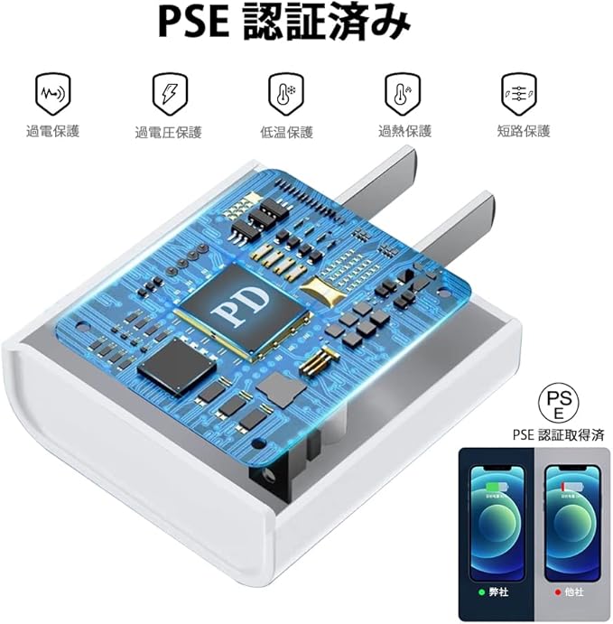 iPhone 充電器 20W PD 急速充電 PSE/MFi認証済み USB-C 充電器 USB C - Lightning ケーブル 1.8m付き Type C 急速充電器 スマホ充電器 iPhone 電源アダプター タイプC アイフォン 充電器 iPhone/iPad/AirPods その他USB-C機器対応