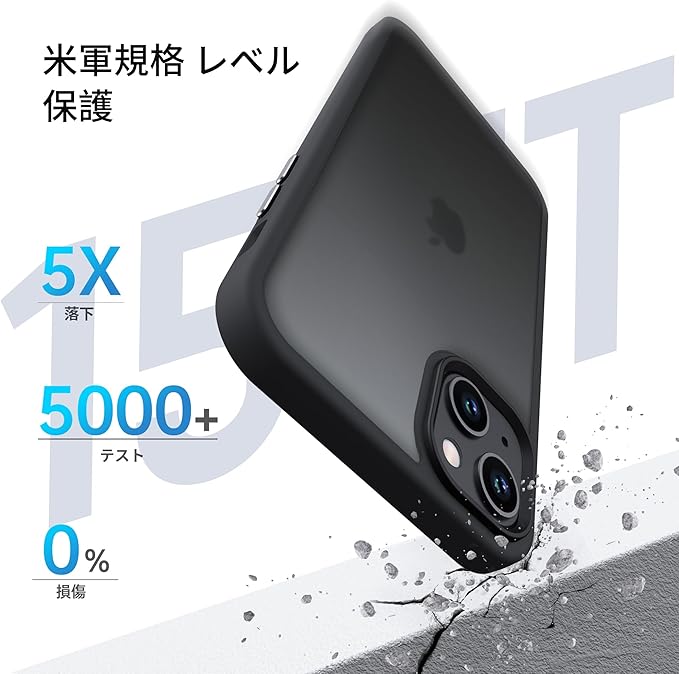 Anqrp iPhone 15 用 ケース 半透明 マット 耐衝撃 滑り止め 米軍MIL規格 指紋防止 スマホケース アイフォン 15 ストラップホール付き ワイヤレス充電対応 アイホン15 カバー 6.1インチ ブラック