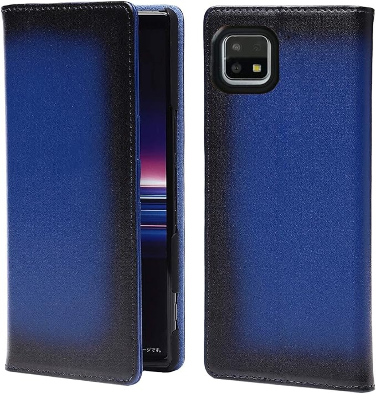 Esperanza 本革AQUOS sense4 AQUOS sense5G との互換性あり スマホ ケース 古代ローマ帝国の伝統技法 グラデーション製法 【 硬度 9H 強化 ガラスフィルム セット 】 アクオス センス4 手帳型 カード ポケット 付 スタンド ( AQUOS sense4 5 , プルシャンブルー)