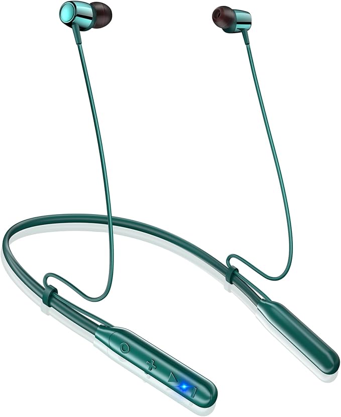 【2025新設計ネックバンド型・長さ調整・Bluetooth 5.3】 イヤホン ネックバンド型 40時間再生 首掛け ブルートゥース CVC8.0ノイズキャンセリング Type-C急速充電 スポーツ イヤフォン マグネット搭載 自動ペアリング ハンズフリー通話 IPX7防水 軽量 音量調節 Siri対応 技適認証済 (グリーン)