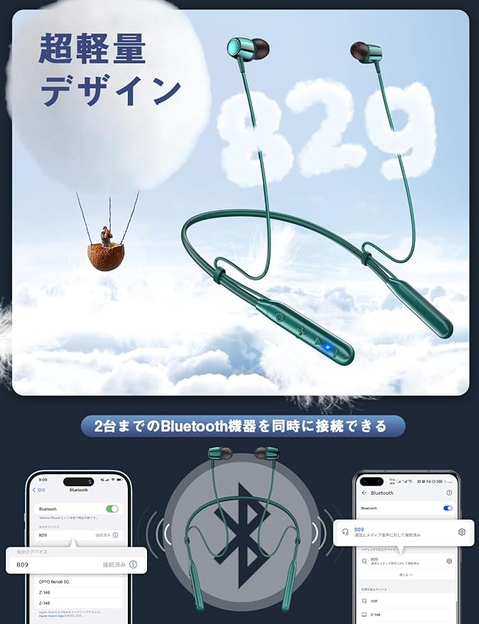 ◆最新進化版・コード調整・40時間連続再生ネックバンド型イヤホン登場◆ 【最先端bluetooth5.3チップ・大容量バッテリー】弊社は首掛けイヤホンの使用に対して研究して、イヤホンコードを調節できる最新版首掛けイヤホンを進めます!最先端のBluetooth5.3技術を採用されて、接続性がよく安定して、通信スピード、通信範囲とも向上にしました。従来品と比べると高速で移動する際にも、遠距離の空間にも、従来品より「音飛び」や「音切れ」」などの状況も改善できます。省エネルギーの大容量バッテリーは搭載さ