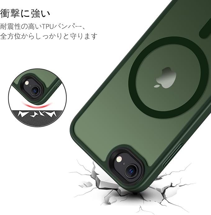 BENTOBEN iPhone SE 第3世代 用/iPhone SE2 / iPhone8 / iPhone7 ケース MagSafe対応 ワイヤレス充電 マット感 半透明 指紋防止 ストラップホール付き レンズ保護 耐衝撃 アイフォン SE3 SE2 8 7 ケース カバー グリーン