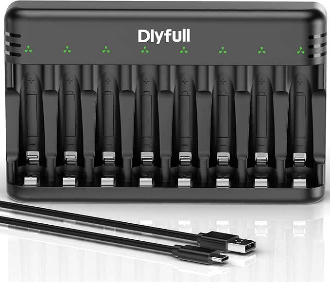 Dlyfull 電池充電器 単4 単3 充電池 充電器、USB Type-C入力 8スロット単三 単4 充電器/充電式ニッケル水素電池 充電器/ニカド充電池に対応 同時充電 LEDライト 単3 バッテリー 充電器 エネループ 充電器 単3 充電池充電器 (黒色)