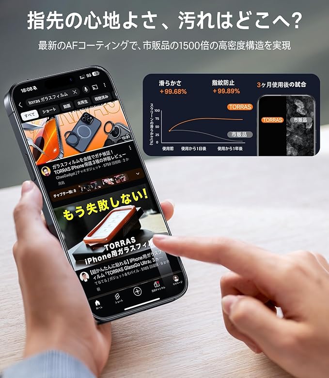 TORRAS iPhone 16 用/iPhone15用 ガラスフィルム 航空宇宙材料 米軍No.1規格 ガイド枠全面保護 10倍強化極細縁 さらさら 貼り付け簡単 指紋防止 9H越え 耐衝撃 2枚 アイフォン16 /15 用 保護フィルム GlassGo Ultra