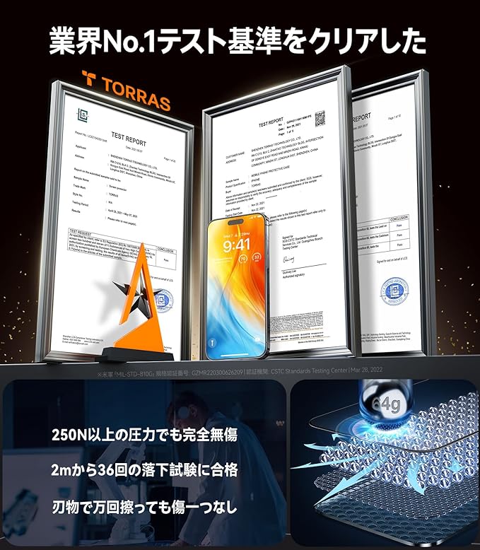 【航空宇宙用材料・表面硬度9H+Hv673】iPhone iPhone 6用/iPhone 5用 ガラスフィルムは日本製AGCの航空宇宙技術から生まれた「Dragontrail」(04 6.3インチ)ガラスを採用し、表面硬度が9Hを超え、鉱石の硬さを示すビッカーズ硬度Hv673を実現する。これにより、耐衝撃性が市販品よりも0倍向上し、激しい衝撃や圧力、摩擦からスマホを確実に守る。過去0年間にわたる保護技術の革新を受け継ぎ、世界0カ国で累計「9600万枚」を販売した。しかも、これまで
