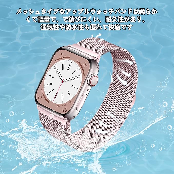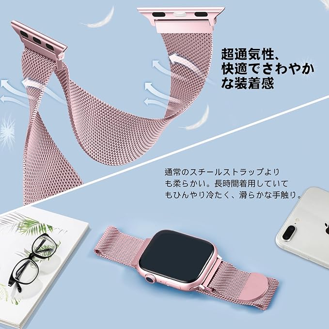 FEEKI コンパチブル Apple Watch バンド 49mm 46mm 45mm 44mm 42mm 41mm 40mm 38mm コンパチブル アップルウォッチ バンド マグネットクラスプ ステンレス鋼 メッシュ 通気 長さ調節 男女兼用Apple Watch Series 10/9/8/7/6/5/4/3/2/1/Ultra/SE に対応 (49/46/45/44/42mm(Series 3/2/1), ローズピンク)