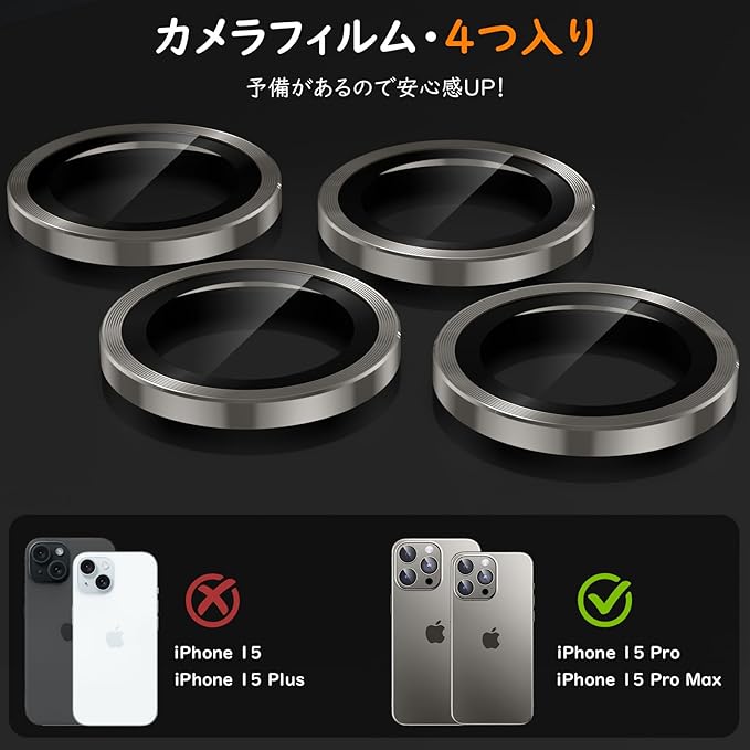 【対応機種・品質保証】15 Pro/15 Pro Max専用カメラレンズプロテクター。セット内容:4枚レンズフィルム+プラスチックオープナー。★★★品質保証付き:当店でご購入の製品は6ヶ月間の保証サービスをご提供しております。『初期不良の場合』『違う商品が届いた場合』『ヒビ入り/割れた場合』、注文履歴からお問い合わせください,お客様からのお問い合わせ内容に応じて返金対応を提供いたします。