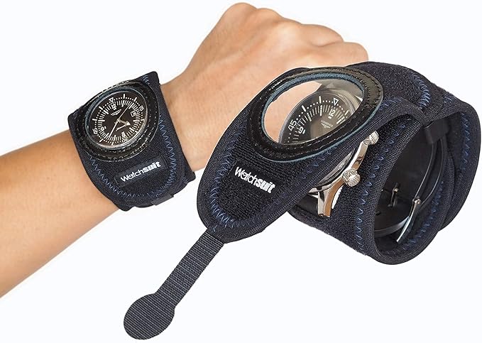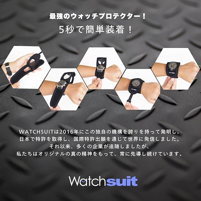 《Watch suit VR黒/黒紺》は腕時計、スマートウォッチを5秒で簡単装着するな伸縮性と通気性がある保護プロテクターです。透明窓の上からスマートウオッチの操作可能カバー。GARMIN、pixel wa