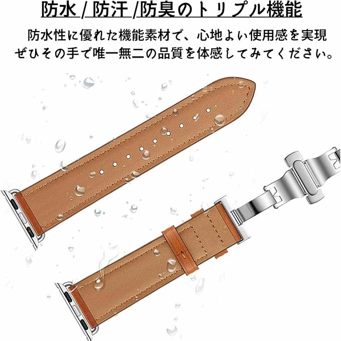 【Iris Apricot】Apple Watch ディーバックル エンボスレザーバンド 38mm 40mm 41mm 42mm 44mm 45mm 49mm アップルウォッチ バンド 本革バンド 男女兼用 iWatch 長さ調節 強力な磁石 通気 メッシュ ベルト1