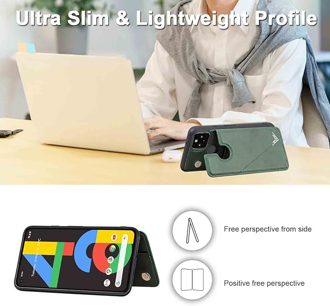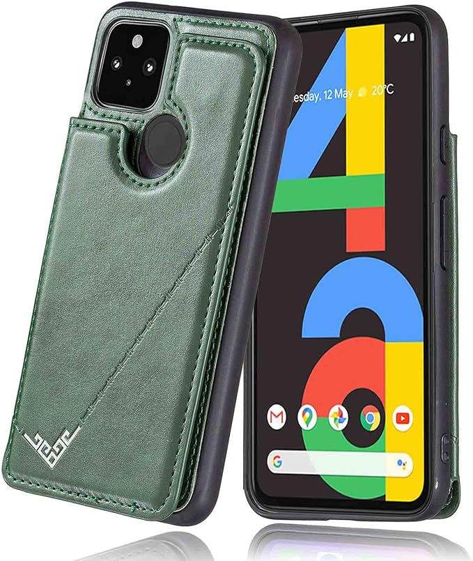【 Viesa 】 背面カバー ケース手帳型 Google Pixel 4a softbank 対応 GOOGLE ランヤード付 背面型ケース (ダルグリーン) 美しい、軽 薄 持ちやすい、滑り止め、すり傷防止マグネット 横置きスタンド機能 財布型 スマホバック?カバー ソフトバンク ピクセル4a グーグルpixel4a GREEN