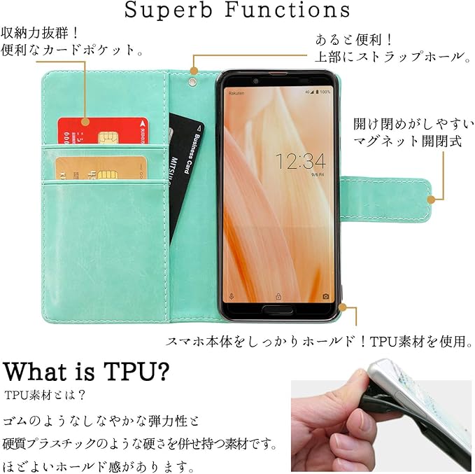 AQUOS sense7 plus A208SH 用 手帳型 ケース カバー A208SHケース A208SHカバー A208SH手帳型 A208SH手帳 sense7plus 手帳 手帳型ケース 手帳型カバー こだわり手帳 ミントグリーン