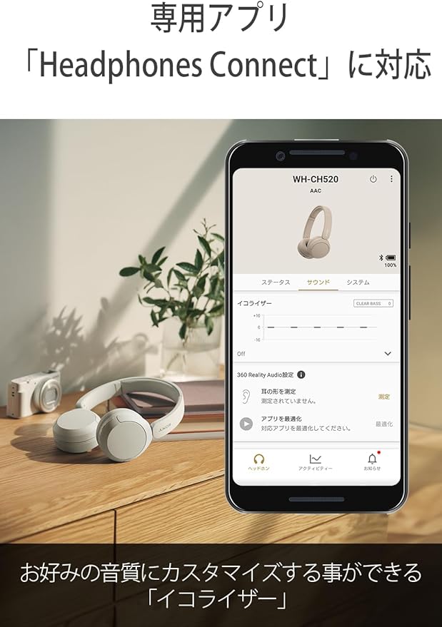 専用アプリ「Headphones Connect」に対応しており、お好みの音質にカスタマイズする事ができる「イコライザー」を使うことで「Relaxed」や「Bass Boost」など8種類のプリセットから選択したり、お好みのイコライザー設定にカスタマイズしたりすることが可能です。