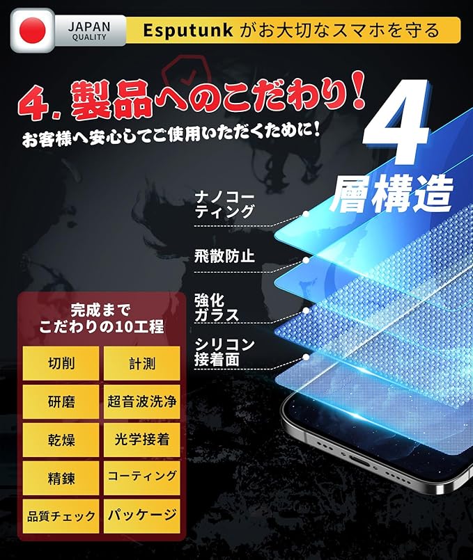 【必ずお読みください】:iPhone 16e 対応ガラスフィルム(6.1インチ)です。新品iPhoneに保護を提供いただき、安心的にご使用ください。ご希望の数は在庫数上の場合はどうぞ弊店にてお問い合わせください。【Esputunk製品保証の概要】:永久保証について、製品に不具合が生じた場合は、お客様からのお問い合わせ内容に応じて代替品交換・返金対応を提供致します。(お一人様につき1回限り)