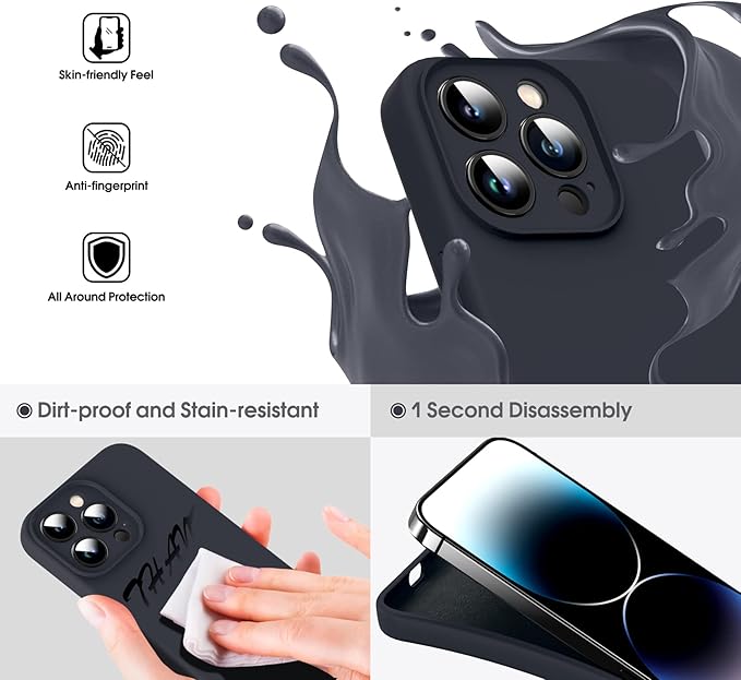 Supdeal iPhone 14 Pro ケース 対応液体シリコン [耐衝撃] [柔軟TPU液体シリコン] [ソフトタッチ] [レンズの全面保護] [指紋防止] [落下防止] [滑り防止] 軽量 4層保護 アイフォン 14 Pro スマホカバー 6.1インチ(ブラック)