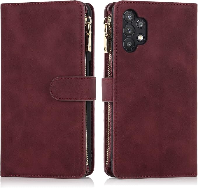 Eastwave サムスン ギャラクシー A32 5G ケース for Samsung Galaxy A32 5G 縄掛けケース 手帳型 財布型 ICカード コインポケット ストラップ付き カード 収納 小銭入れ ファスナーポケット付き PUレザー 6色 レッド