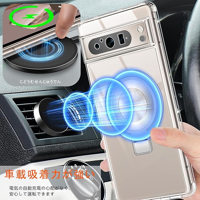 Google Pixel 8 Pro ケース クリア MagSafe対応 スタンド ピクセル8 Pro スマホケース 透明 ワイアレス充電対応 リング 縦横両対応 TPU 背面PC 耐衝撃 黄ばみなし Pixel8 pro カバー ストラップホール付き 全透明