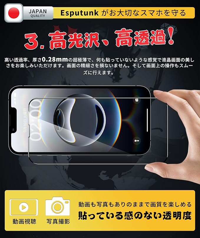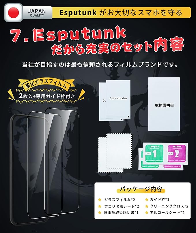 【必ずお読みください】:iPhone 16e対応ガラスフィルム(6.1インチ)です。新品iPhoneに保護を提供いただき、安心的にご使用ください。ご希望の数は在庫数上の場合はどうぞ弊店にてお問い合わせください。【Esputunk製品保証の概要】:永久保証について、製品に不具合が生じた場合は、お客様からのお問い合わせ内容に応じて代替品交換・返金対応を提供致します。(お一人様につき1回限り)