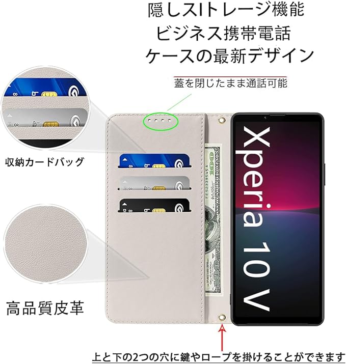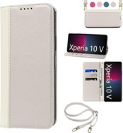 Xperia 10 V ケース 手帳型 高質PUレザー Xperia 10 V カバー SO-52D ケース 携帯カバー SOG11 ケース 肌感のよ 二色組合せ 耐衝撃 肩掛け 首かけ 斜めがけ ショルダー ケース 皮革 耐汚れ 内蔵マグネッ