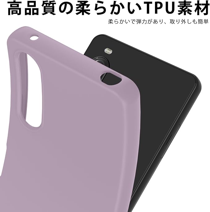 Xperia 10 V ケース シリコン 耐衝撃 柔軟 SO-52D | SOG11 カバー 人気 薄型 衝撃吸収 携帯カバー ストラップホール付き ワイヤレス充電 軽量 手触り良い 指紋防止 滑り防止 (紫)4-xp 10v-09