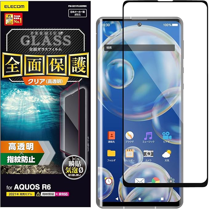 エレコム AQUOS R6 ガラスフィルム フルカバー 0.33mm ブラック PM-S211FLGGRBK クリア