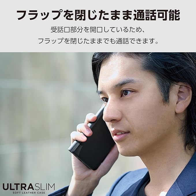 端末の薄さや軽さを損ねない、薄型・超軽量なウルトラスリムタイプのソフトレザーケース(手帳型)です。