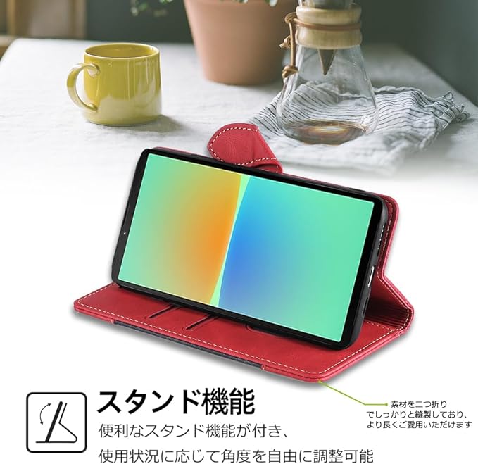 Google Pixel 8 ケース 手帳型 グーグル ピクセル 8 カバー COCOCLOUD 高級PUレザー 肌のような手触り 横置きスタンド機能 2枚のカードを収納 マグネット搭載 耐衝撃 ハンドメイド 高質感皮革 レッド
