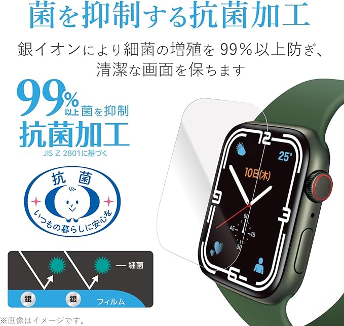 エレコム Apple Watch series7 41mm 衝撃吸収フィルム 防指紋 抗菌 AW-21BFLAFPPVGR