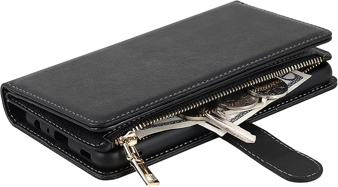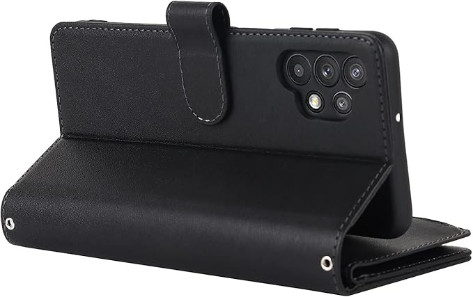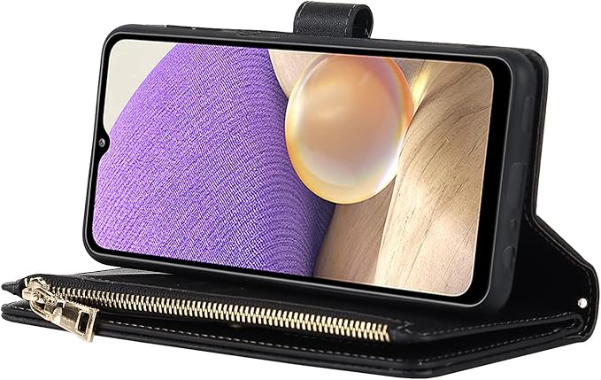 Eastwave サムスン ギャラクシー A32 5G ケース for Samsung Galaxy A32 5G 縄掛けケース 手帳型 財布型 ICカード コインポケット ストラップ付き カード 収納 小銭入れ ファスナーポケット付き PUレザー 6色 ブラック