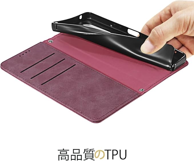 NanHou Xperia 5 V ケース 手帳型 つや消し レザー スタイル質感 カバー 手帳型 耐衝撃 保護 SO-53D SOG12 カバー 内蔵マグネット 財布型 携帯カバー カードポケット スタンド機能 リストバンド Sony エクスペリア 5V 手帳型 - ダークレッド