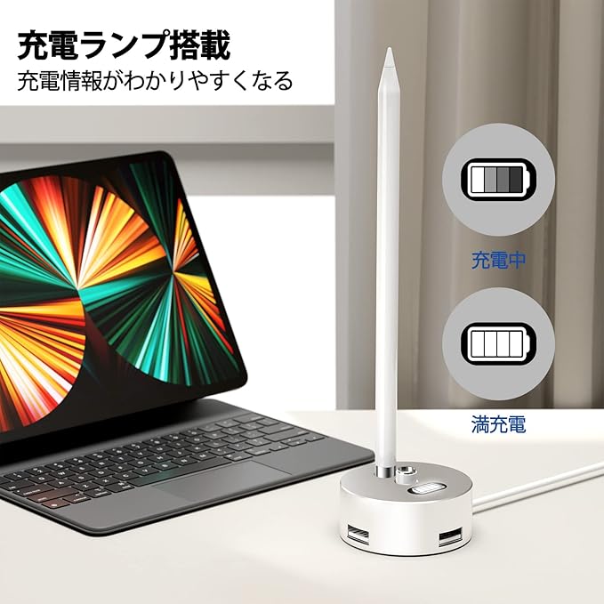 【業界新モデル】 Apple Pencil 充電 スタンド 充電情報表示機能 USB出力ポートを3ポート搭載 アップル ペンシル 第1世代 専用 充電器 チャージャー ドック ホルダー として兼用 対応iPad Pro/Air/min