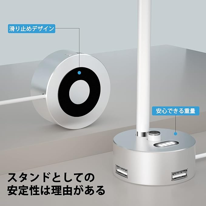 Apple Pencil 充電 スタンド 充電情報表示機能 USB出力ポートを3ポート搭載 アップル ペンシル 第1世代 専用 充電器 チャージャー ドック ホルダー として兼用 対応iPad Pro/Air/mini ペンシル用 USB充電ケーブル付き アルミニウム合金製 滑り止め 紛失防止 シルバー