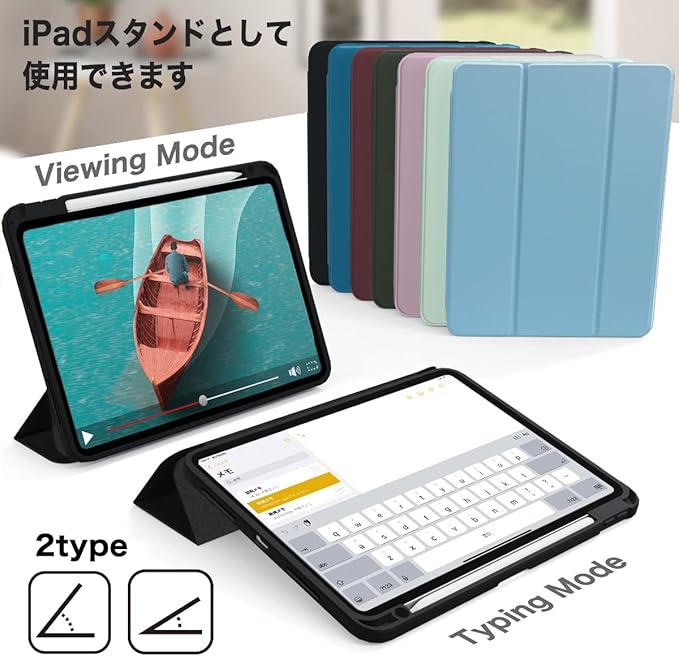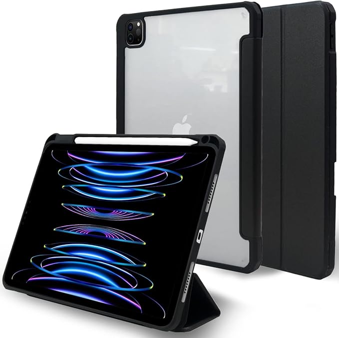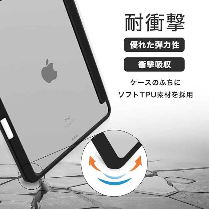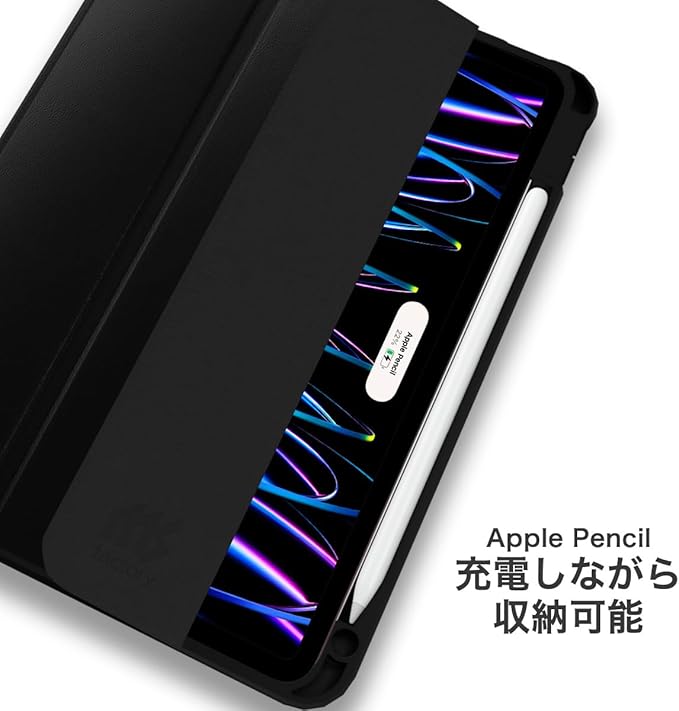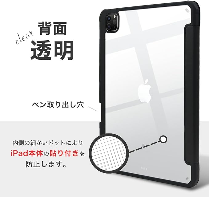 MS factory iPad Pro 11インチ 第4/3/2世代 用 ケース 2022 2021 2020 背面透明 ペンシル収納 カバー 第4/第3/第2世代 耐衝撃 軽量 スタンド オートスリープ Apple Pencil 充電対応 ブラック 黒 IPDP11/4-NO-DET-BK