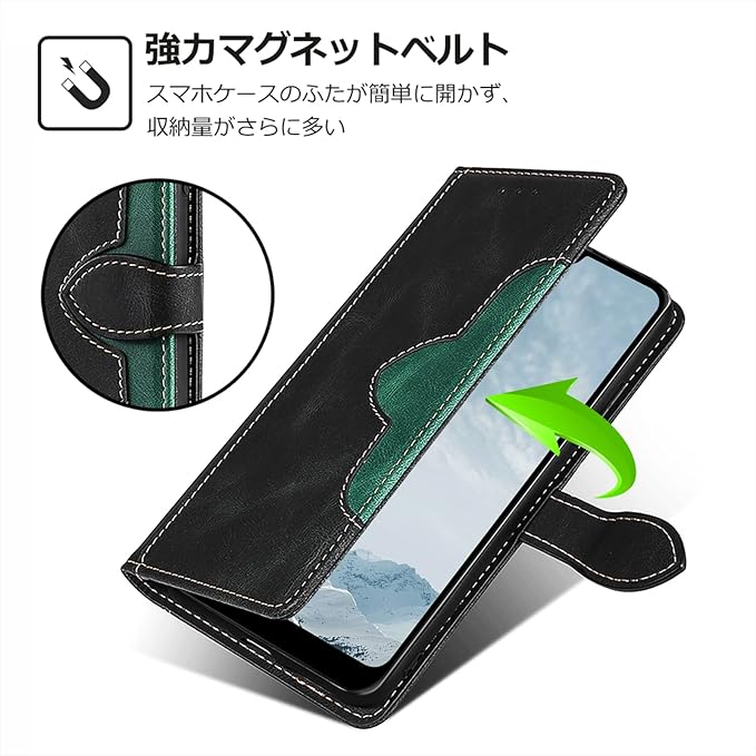 AQUOS wish ケース 手帳型 高級合皮 au SHG06 SIMフリー SH-M20 ケース スタンド機能 アクオス A104SH TPUソフトカバー マグネット式 PUレザー カード収納付き 超軽量 耐衝撃 シャープ アクオス ウィッシュ 対応 カバー カメラ保護 (Aquos wish, ブラック)
