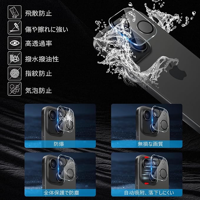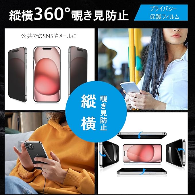 【360°覗き見防止】iPhone15 ガラスフィルム 覗き見防止 360度 + iphone15 カメラフィルム iphone15 保護フィルム 360度全方向覗き見防止 iPhone15 強化ガラス 液晶保護フィルム 360°のぞき見防止 アイフ