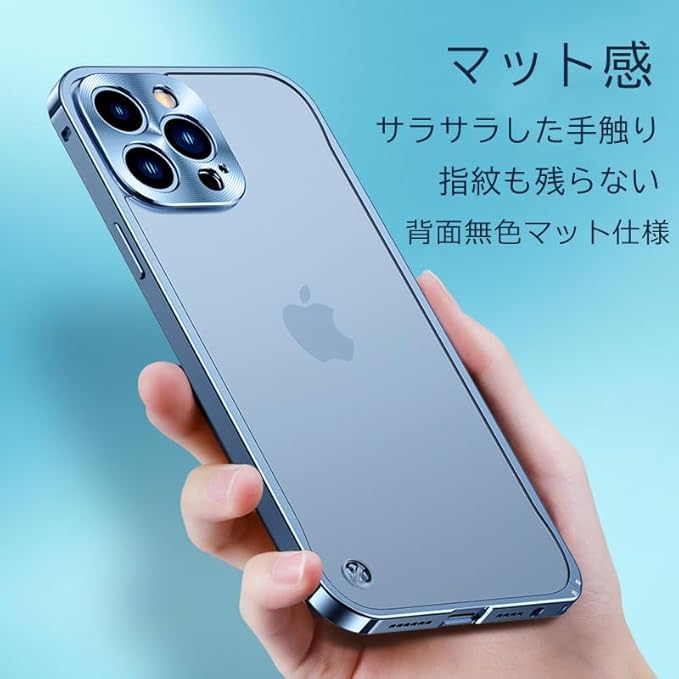 iPhone15 plus 用 ケース ブルー 組み付け式 マットクリア アルミケース レンズフレーム アイフォン15 plus 用 カバー Blue スマホケース cs104