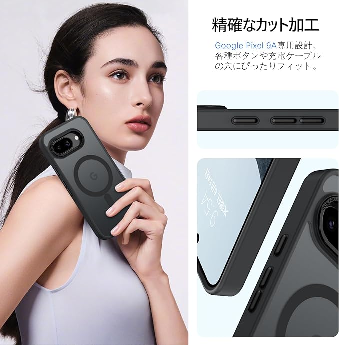 BENTOBEN Google Pixel 9a 用ケース MagSafe対応 ワイヤレス充電 マット 半透明 耐衝撃 米軍MIL規格 マグネット搭載 ストラップホール付き 指紋防止 レンズ保護 グーグルピクセル9a スマホケース カバー ブラック