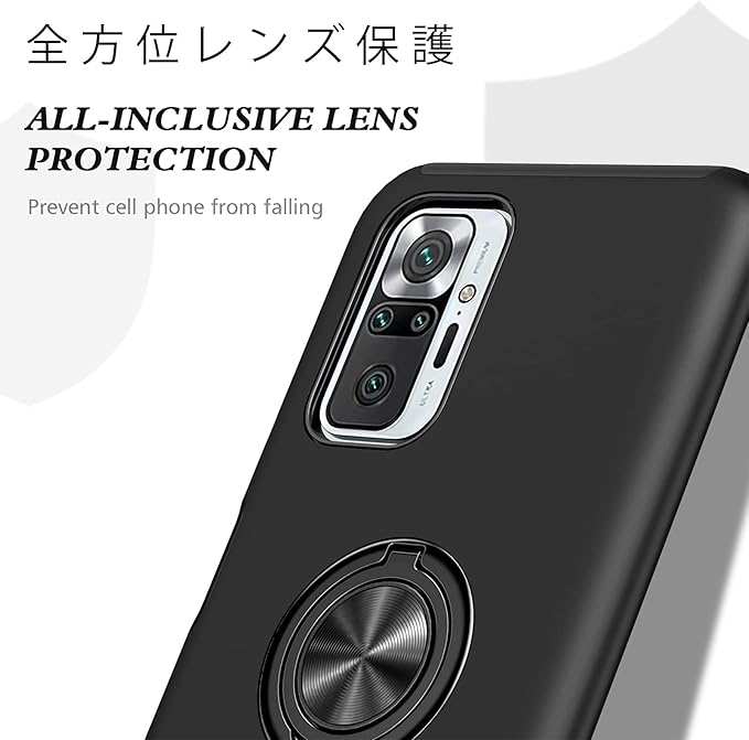 Redmi Note 10 Pro ケース ケースリング 耐衝撃 カバー 薄型 tpu 衝撃吸収 指紋防止TPU+PC材質 車載ホルダー対応 滑り止め 落下防止 リング付き スタンド機能 傷つけ防止 全面保護 一体型 カバー 黒Q08003-11