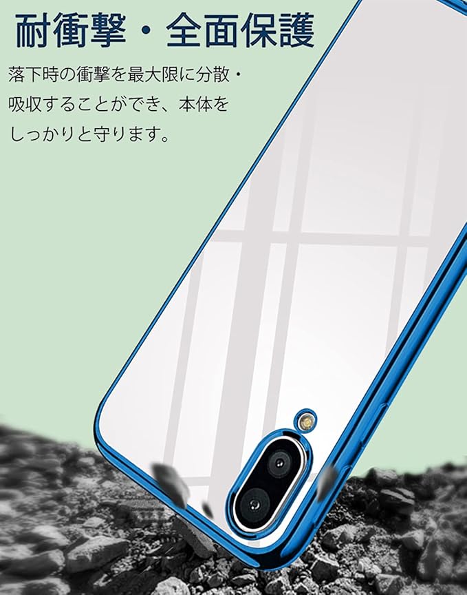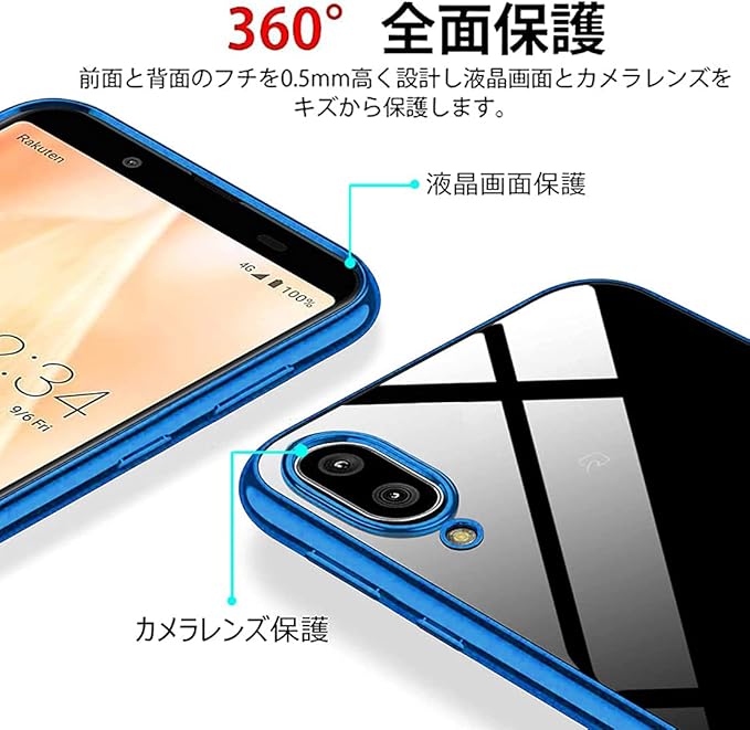 AQUOS sense3 plus ケース クリア 薄型 TPU 耐衝撃 SH-RM11 SHV46 保護カバー スマホケース 透明 メッキ加工 青縁 背面クリア ストラップホール付き 超軽量 カバー (ブルー)