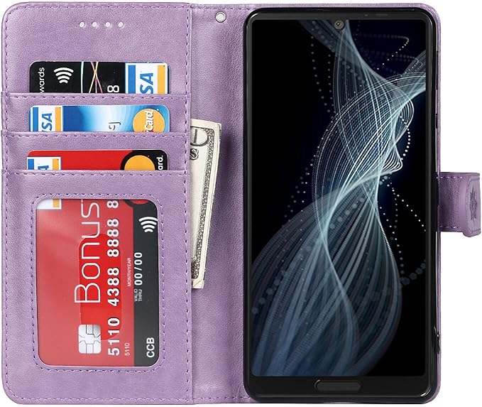 Eastwave AQUOS sense4 ケース AQUOS sense5G 手帳型 AQUOS Sense 4 Lite 財布型 Sense4 basic カバー ケース ストラップ付き PUレザー カード収納 横置きスタンド 機能 明るい色 内蔵マグネット?パープル