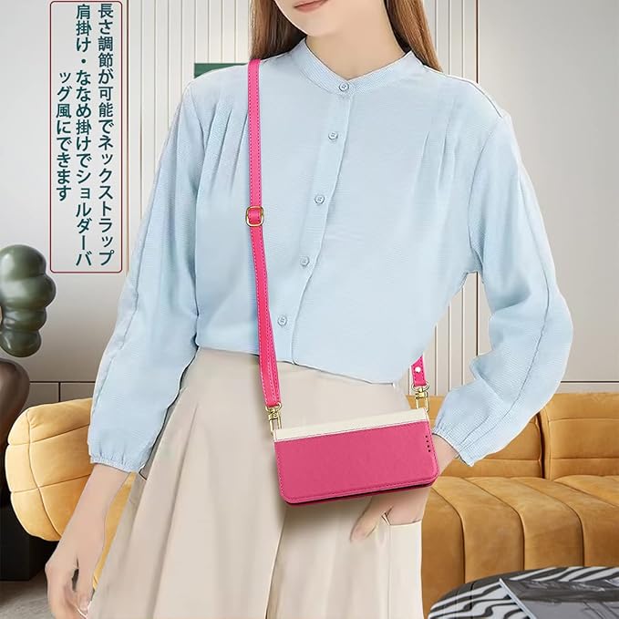 【クロスボディチェーン&封筒財布のデザイン】調節可能ショルダーストラップ、可斜めがけ、可肩掛け。携帯電話が紛失する恐れはなし、斬新なデザインのハンドバッグは日常、平日、短距離旅行、アウトドアなどにとても向いています。。ケースだけが必要な場合、ストラップは取り外し可能です。また、ユニークな封筒のデザイ