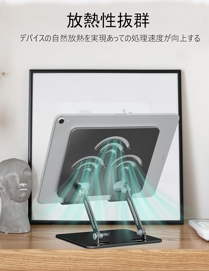 ipadスタンド - タブレット スタンド - 絵描きホルダー - ToBeoneer(ツビワ) - アイパッド 高さ角度調整可能 持ち運び便利 折りたたみ式 イラスト 置き台 卓上 アルミ製 軽量 充電スタンド 立て 在宅ワーク ZOOM 会議 ipad pro/ipad mini/ipad air/Kindleなど4-12.9インチに対応 (黒 ブラック, 標準版)