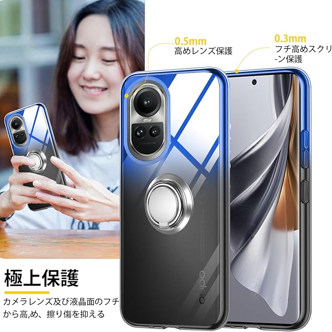 OPPO Reno10 Pro 5G ケース リング TPU 薄型 軽量 シリコン グラデーション色 ケース スマホケースReno10 Pro 専用 耐衝撃 指紋防止 車載ホルダー対応 防塵 一体型 人気 携帯カバー 全面保護カバー ブ