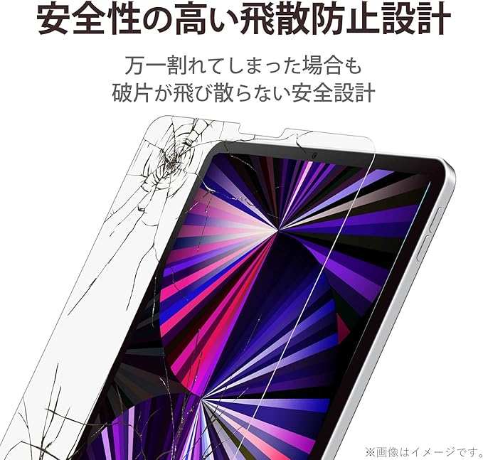 高硬度ガラスを更に強化した、ブルーライトカットタイプのiPad Air 第5世代(2022年モデル)、iPad Pro 11inch 第3世代(2021年モデル)、iPad Air 第4世代(2020年モデル)、iPad Pro 11inch 第2世代(2020年モデル)、iPad Pro 11inch (2018年モデル)用ガラスフィルムです。