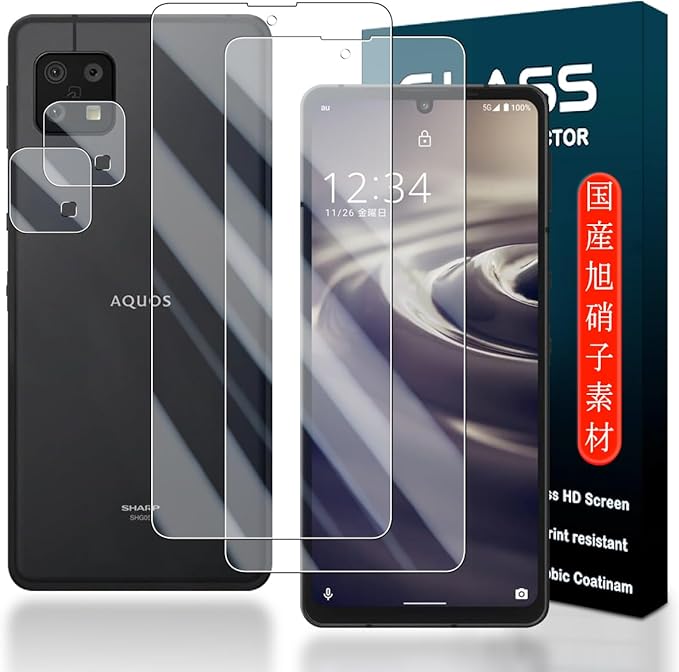 Qrivp ガラスフィルム AQUOS Sense6 ガラスフィルム 指紋認証対応 【2+2枚セット 】日本旭硝子素材製 AQUOS Sense6 SH-54B SHG05 / AQUOS Sense6s SHG07 保護フィルム ガラスフィルム 2枚 + カメラフィルム 2枚 指紋認証鋭敏 強化ガラス 液晶 光沢 防指紋 撥水・防水 気泡レス 耐衝撃 飛散防止 自動吸着 貼り付け 簡単 硬度9H 高透過率 撥水撥油 指紋防止QGAS64