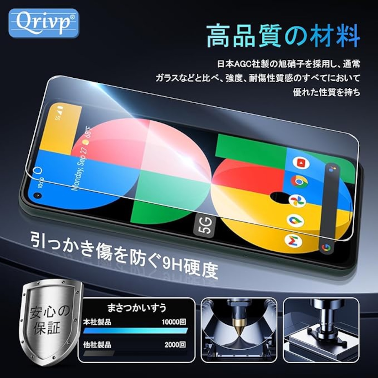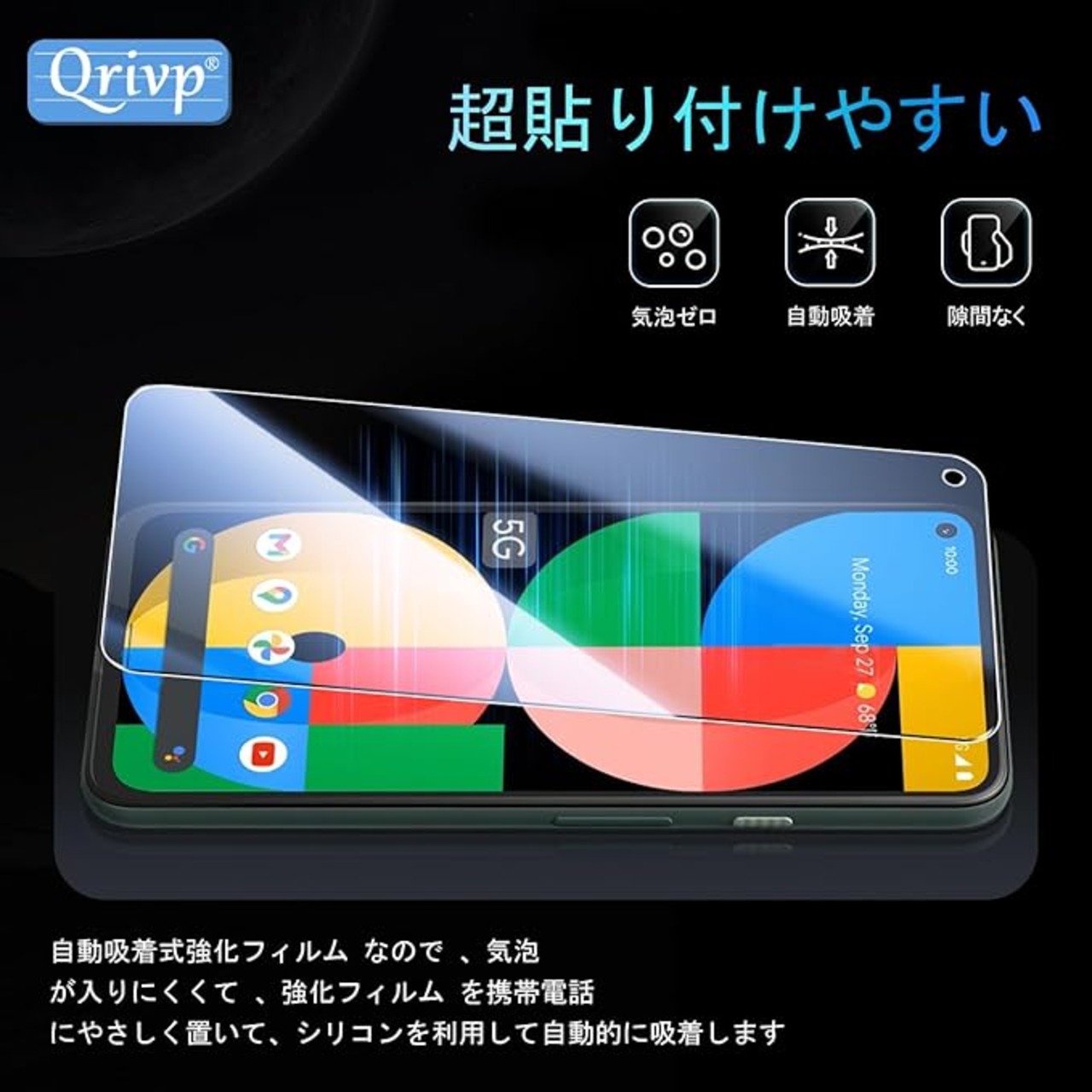 Qrivp ガラスフィルム Google Pixel 5A 5G ガラスフィルム 指紋認証対応 【2+2枚セット 】日本旭硝子素材製 Google Pixel 5A 5G 保護フィルム ガラスフィルム 2枚 + カメラフィルム 2枚 指紋認証鋭敏 強化ガラス 液晶 3D Touch対応 光沢 防指紋 撥水・防水 気泡レス 耐衝撃 飛散防止 自動吸着 貼り付け 簡単 硬度9H 高透過率 撥水撥油 指紋防止QGGP5A54