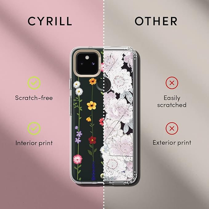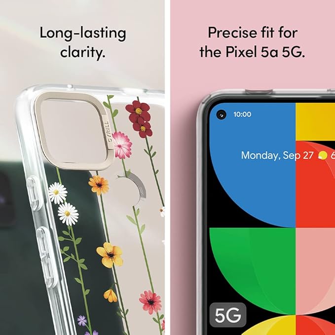 【CYRILL】 by Spigen Google Pixel 5a クリア 花柄 ケース TPU 半透明 ソフト PC ケース 花 ストラップホール付き 高弾性 耐久性 軽量 耐衝撃 カメラ保護 薄型 ワイヤレス充電 Qi充電 ほこりなしフレッシュな花柄コレクション(フラワーガーデン)