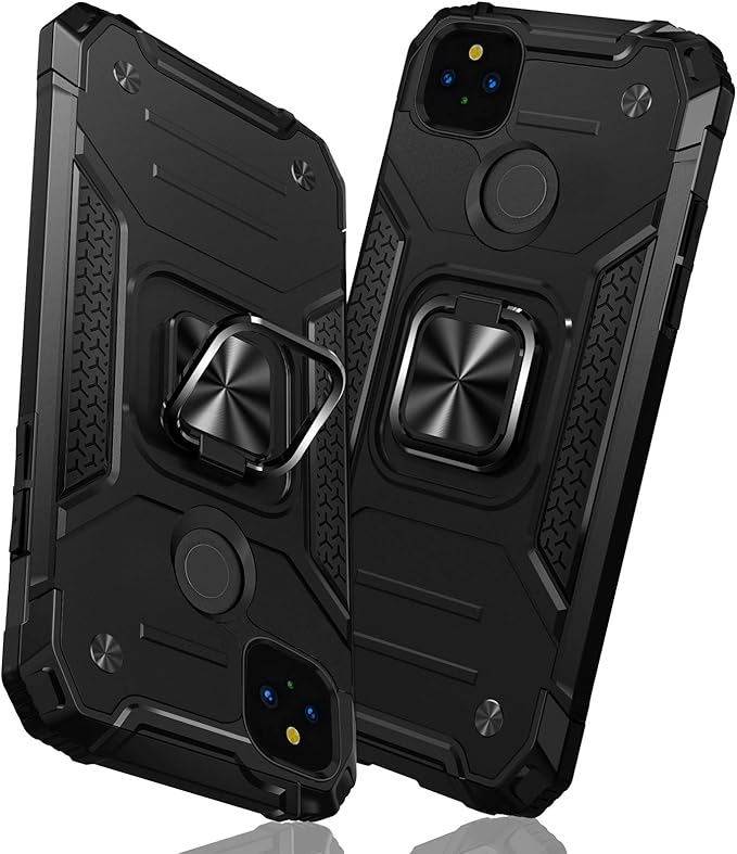 TMUJWS Google Pixel 4a 5gケース リング 衝撃吸収 耐衝撃 TPU+PCバンパー 二重構造 米軍MIL規格 全面保護カバー 滑り防止 車載ホルダー対応 擦り傷防止 滑り止め 軽量 薄型 グーグルピクセル4a 5G カバー 指紋防止 耐久 おしゃれ 人気 携帯カバー 黒 MZ64-43