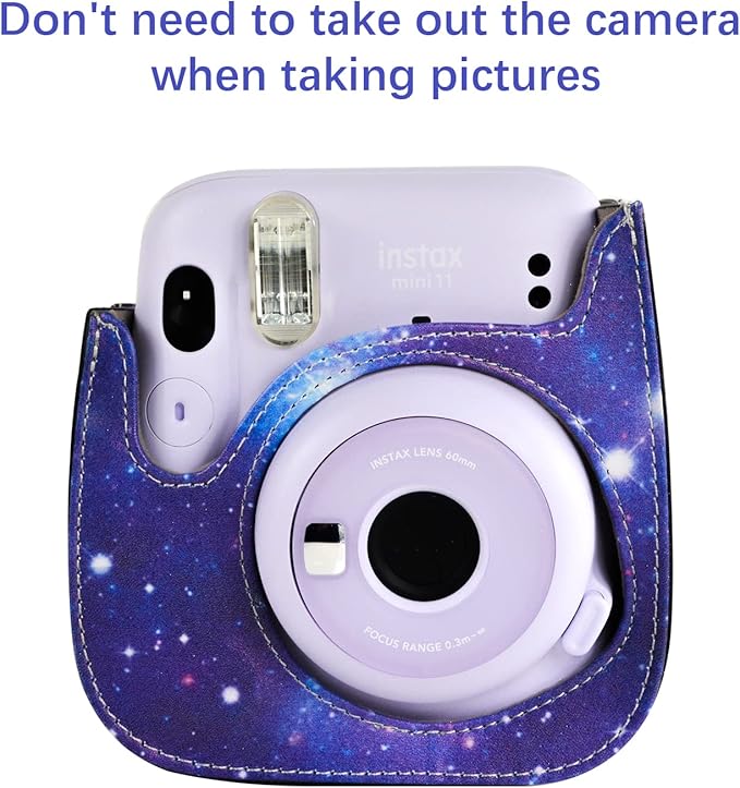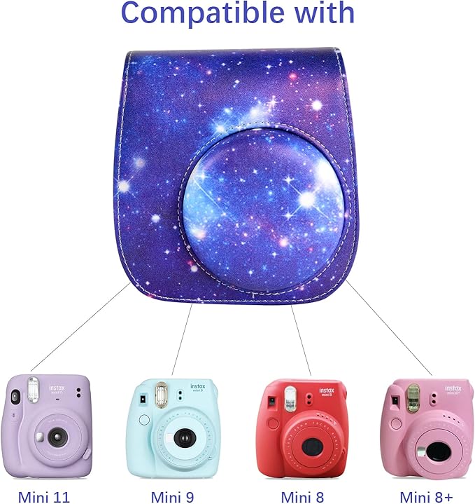 Rieibi instax mini 12ケース、チェキケース instax mini 12ケース チェキ mini11 ケース チェキ instax mini9 ケース instax mini8 ケース カメラケース 保護ケース 可愛いカメラバッグ ショルダーストラップ付き 落下防止 全面保護 PUレザー おしゃれ 携帯型(mini 12/11/8/8+/9専用 ブルー星空柄)