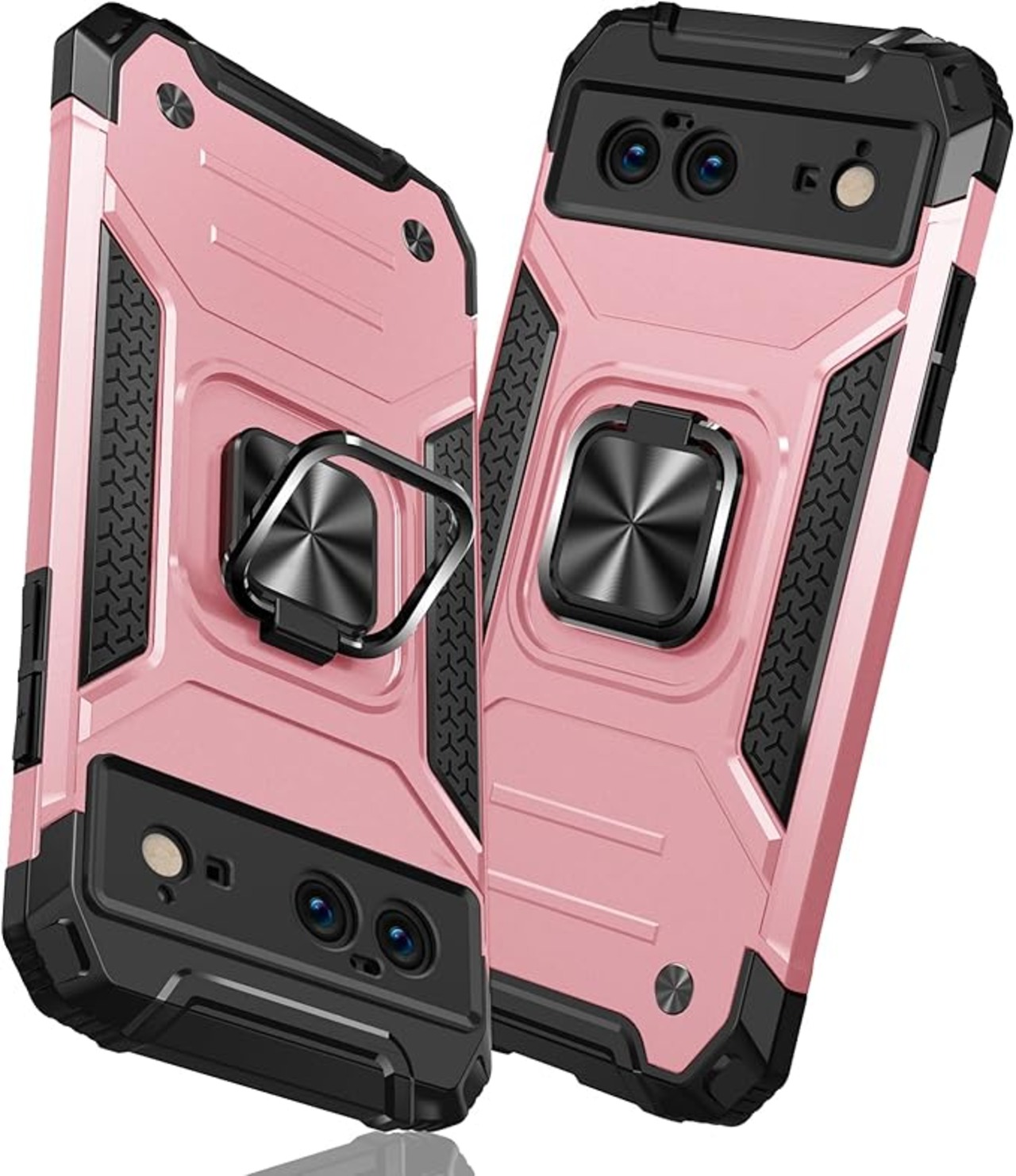 TMUJWS Google Pixel 6 ケース リング 衝撃吸収 耐衝撃 TPU+PCバンパー 二重構造 米軍MIL規格 全面保護カバー 滑り防止 車載ホルダー対応 擦り傷防止 滑り止め 軽量 薄型 グーグル ピクセル 6 カバー 6.4インチ 指紋防止 耐久 おしゃれ 人気 携帯カバー ローズゴールド MZ65-63