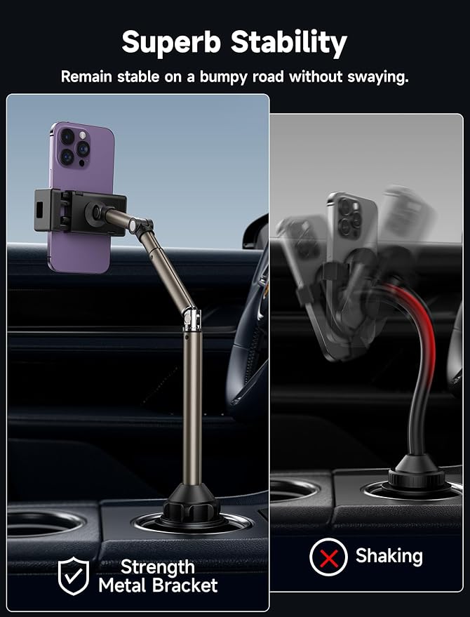 【これまでにない安定性】 JSAUX 車載用カップ電話ホルダーのアームは、強くて安定した金属で作られており、スインググースネックバックボーンを持つものよりも安定しています。 でこぼこの道を運転しても、まだ揺れません。